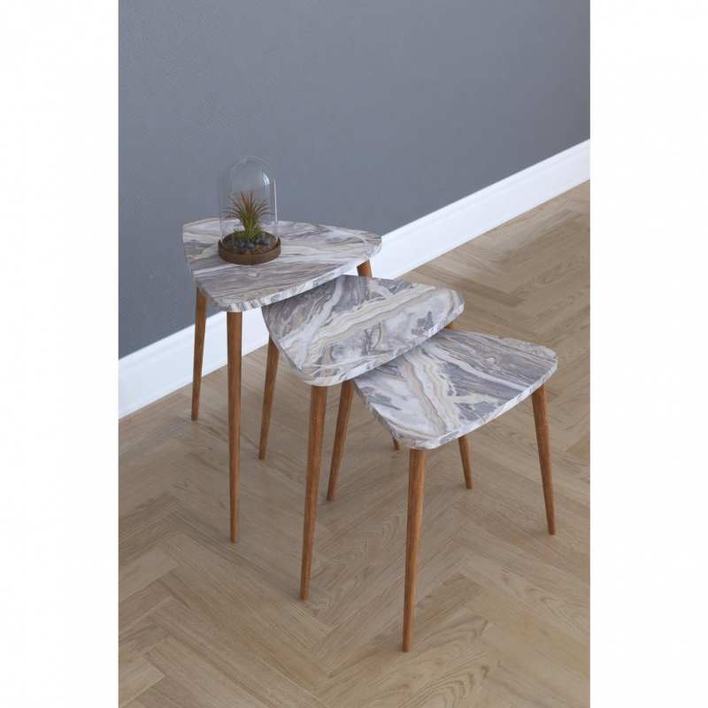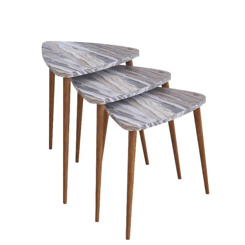 Τραπεζάκι Βοηθητικό ArteLibre ABIDEMI Γκρι/Όψη Μαρμάρου Μοριοσανίδα/Ξύλο 35x52/35x47/35x42cm Σετ 3Τμχ