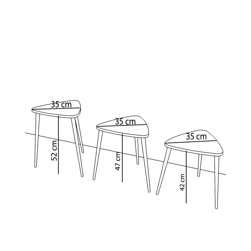 Τραπεζάκι βοηθητικό σε σετ των 3 σε λιτό αλλά ταυτόχρονα μοντέρνο σχεδιασμό θα δώσει μια νέα πνοή και θα αναβαθμίσει τη διακόσμηση του χώρου σας. Παράλληλα, έπιπλο με μεγάλη λειτουργικότητα, θα γίνει απαραίτητο για το σαλόνι ή ακόμα και για άλλους χώρους του σπιτιού σας.
