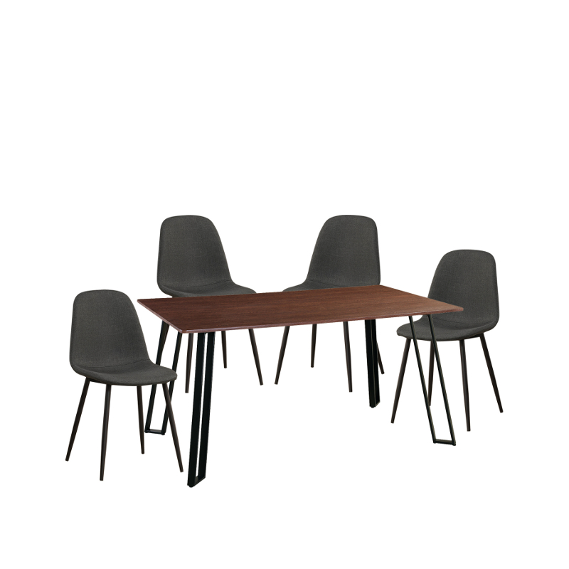 Σετ Τραπεζαρία (4+1) SARTHA Καρυδί/Μαύρο/Γκρι Ύφασμα/Μέταλλο/Ξύλο 150x90x75cm