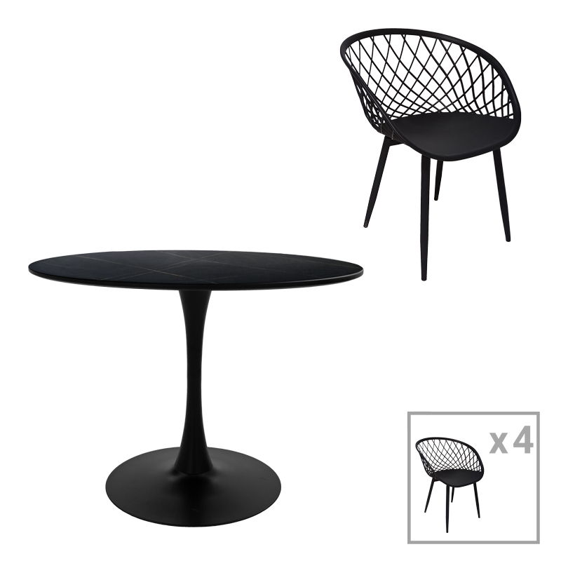 - 4τεμ πολυθρόνα Ezra pakoworld PP σε μαύρη απόχρωση 62x42x82εκ
