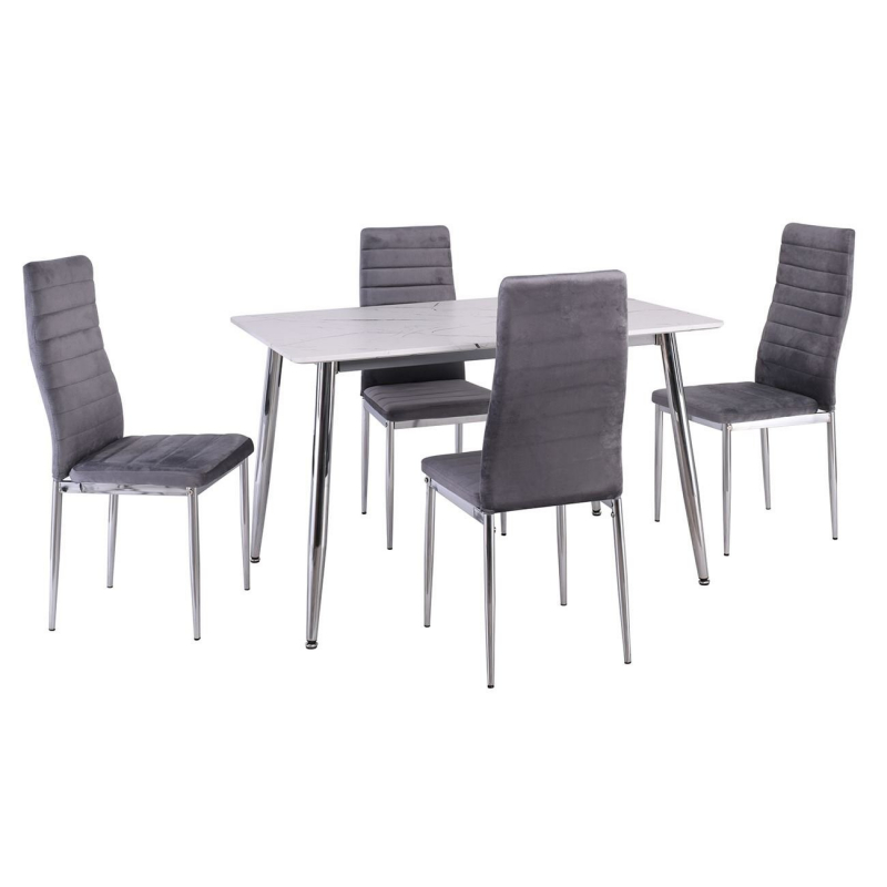 JETTA-DATUM Τραπεζαρία Κουζίνας Χρώμιο, Τραπέζι Mdf Άσπρο + 4 Καρέκλες Velure Γκρι Table:120x80x75 Chair:40x50x95