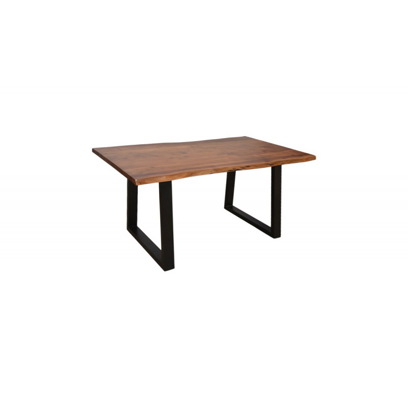 Τραπέζι Miles pakoworld μασίφ ξύλο ακακίας πάχους 3.7-4εκ σε καρυδί απόχρωση με μαύρα μεταλλικά πόδια 140x80x76εκ