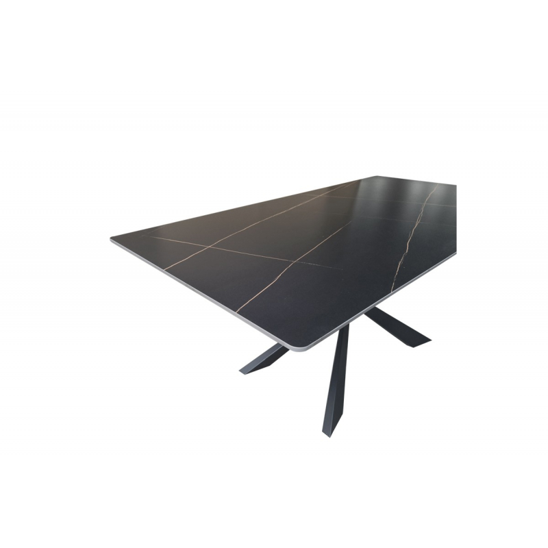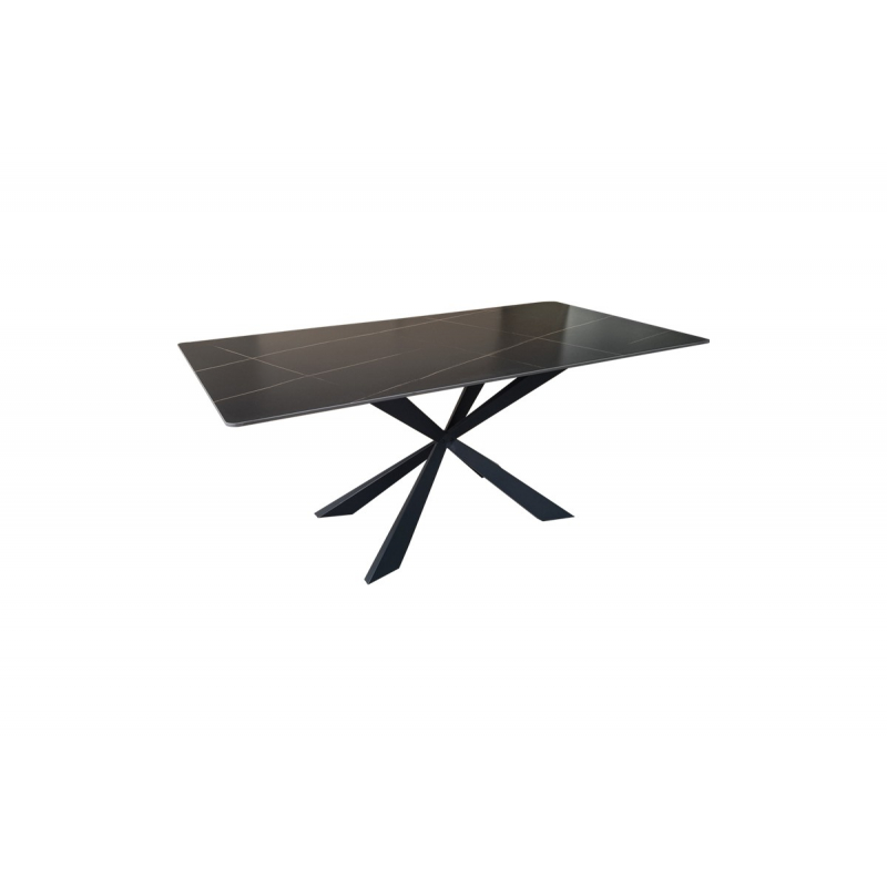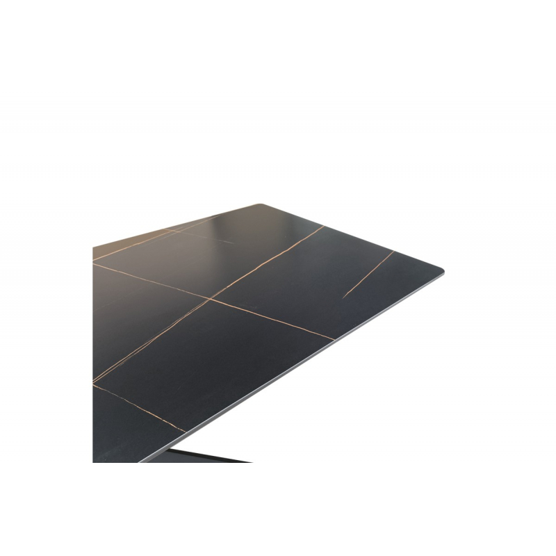 Τραπέζι Mattias pakoworld sintered stone μαύρη όψη μαρμάρου με μαύρα μεταλλικά πόδια 180x90x75εκ