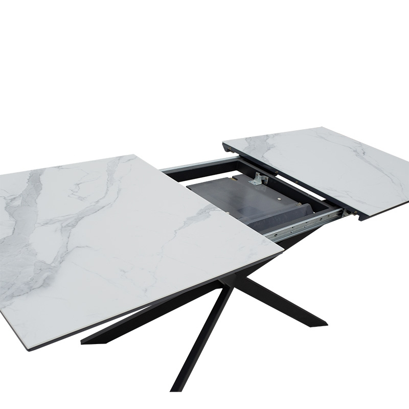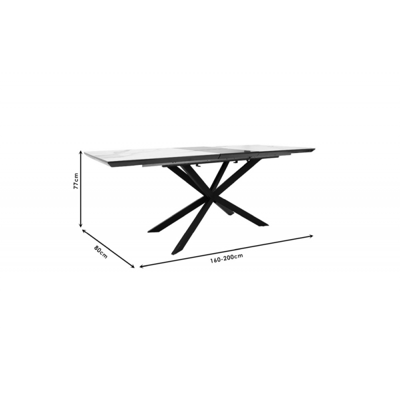 Τραπέζι επεκτεινόμενο Palan pakoworld sintered stone σε όψη μαρμάρου - μαύρο μέταλλο 160-200x80x77εκ