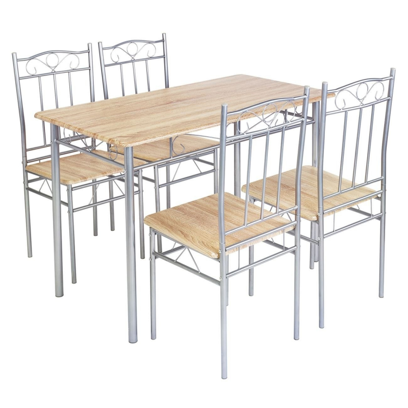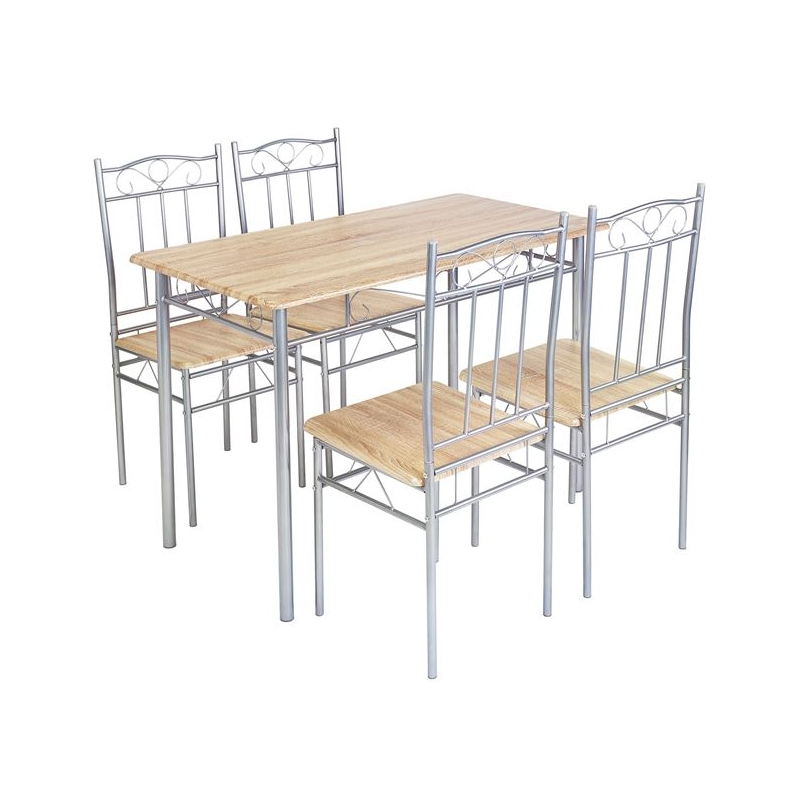 LUTON Set Τραπεζαρία Σαλονιού Κουζίνας: Τραπέζι + 4 Καρέκλες Μέταλλο Βαφή Silver, Sonoma Τρ.120x70x74 / Καρ.40x40x90 cm