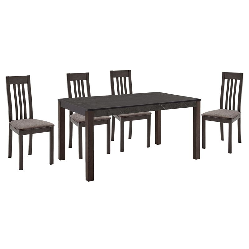 SABINIO Set (1+4) Τραπεζαρίας- Κουζίνας, Σκούρο Καρυδί, Melamine Greystone,Ύφασμα Μπεζ Table 135x80x75 Chair 43x52x97