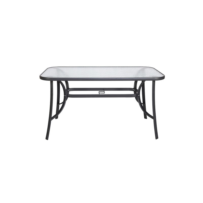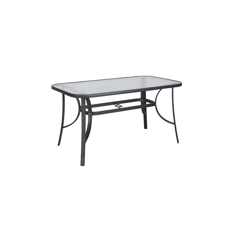 Denim τραπέζι μεταλλικό σε χρώμα ανθρακί, με γυαλί ασφαλείας, σε κλασσική γραμμή αναλλοίωτη στον χρόνο. Ένα τραπέζι που θα ομορφύνει την βεράντα ή τον κήπο σας.