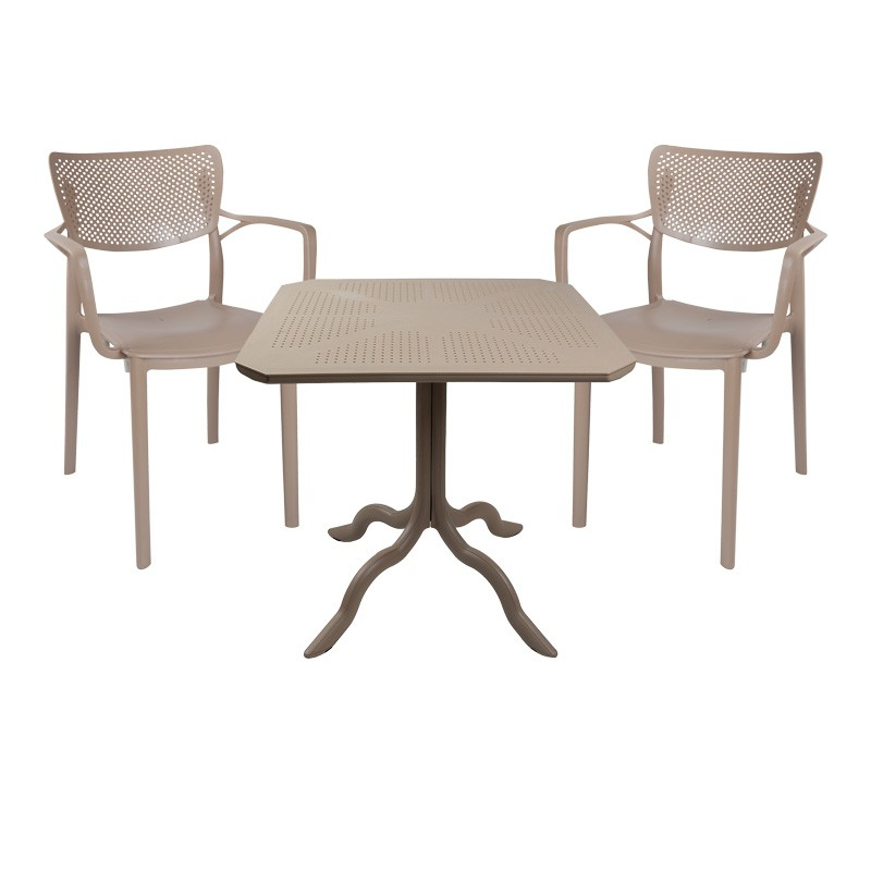 Τραπεζαρία Icon-Frontline pakoworld σετ 3τεμ PP σε cappuccino απόχρωση