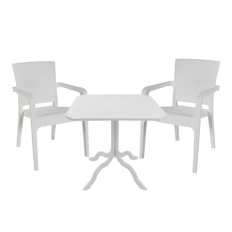 Τραπεζαρία Icon-Halcyon pakoworld σετ 3τεμ PP σε λευκή απόχρωση