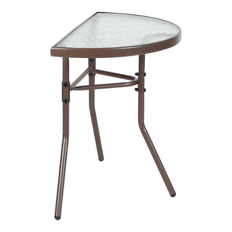 Τραπέζι ημικυκλικό Bion pakoworld γυαλί-μέταλλο σε καφέ απόχρωση 70x40x65εκ