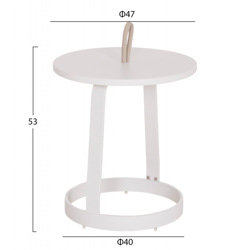 Βοηθητικό Στρογγυλό Τραπεζάκι Εξωτερικού Χώρου MINO | Αλουμίνιο & Σχοινί -- ΛΕΥΚΟ ________________________________________ Περιγραφή Αναβαθμίστε τον εξωτερικό σας χώρο με το βοηθητικό τραπεζάκι MINO, τον απόλυτο συνδυασμό minimal αισθητικής και κορυφαίας λειτουργικότητας. Σχεδιασμένο για να αντέχει, το MINO αποτελεί την κορυφαία επιλογή τόσο για την ιδιωτική βεράντα όσο και για επαγγελματικούς χώρους υψηλών απαιτήσεων. Κατασκευασμένο από ανθεκτικό αλουμίνιο σε ΛΕΥΚΟ χρώμα, είναι απόλυτα ανθεκτικό στην υγρασία και την ηλιακή ακτινοβολία. Το highlight του; Ένα έξυπνο χερούλι από μπεζ συνθετικό σχοινί στο κέντρο, που επιτρέπει την άμεση μεταφορά του εκεί που το χρειάζεστε. Επαγγελματική Χρήση Το MINO είναι ιδανικό για Beach Bars, Ξενοδοχεία και Pool Clubs. •Εύκολη Μεταφορά: Η κρυφή λαβή επιτρέπει στο προσωπικό να μεταφέρει το τραπεζάκι μαζί με τα ποτά απευθείας στην ξαπλώστρα ή το daybed του πελάτη. •Smart Design: Το χερούλι «βυθίζεται» στην επιφάνεια μετά τη χρήση, εξασφαλίζοντας μια λεία επιφάνεια για cocktails και snacks χωρίς εμπόδια. •Ανθεκτικότητα: Η ποιότητα του αλουμινίου το καθιστά ιδανικό για χρήση σε διάφορους εξωτερικούς χώρους. ------------------------------------------------------- Τεχνικά Χαρακτηριστικά •Υλικό: Premium Αλουμίνιο με ηλεκτροστατική βαφή. •Λεπτομέρεια: Αναδιπλούμενο χερούλι από weather-resistant συνθετικό σχοινί. •Διαστάσεις: Διάμετρος Φ47cm | Ύψος 53cm (Βάση Φ40cm). •Προδιαγραφές αλουμινίου: Επιφάνεια τραπεζιού: 470x20x1,5 χιλ. Βάση: 400x50x10x1,5 χιλ. ------------------------------------------------------- Συντήρηση Minimal φροντίδα για μέγιστη διάρκεια. Καθαρίζεται πανεύκολα με νερό και ήπιο σαπούνι, ενώ η αντισκωριακή του φύση το καθιστά ανθεκτικό απέναντι στις καιρικές συνθήκες. ------------------------------------------------------- Γιατί μας αρέσει Μας αρέσει η πολυμορφικότητά του! Από κομψό βοηθητικό τραπεζάκι σε ένα μοντέρνο μπαλκόνι, μέχρι τον απαραίτητο συνοδό της ξαπλώστρας σε ένα luxury resort. Το MINO είναι το έπιπλο που "κινείται" μαζί με τις ανάγκες σας.