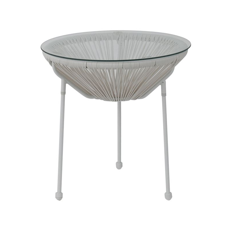 ACAPULCO Τραπεζάκι Μέταλλο Βαφή Άσπρο, Rattan Άσπρο Φ50x50cm