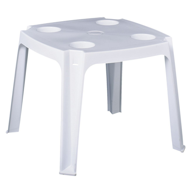 FREDDO Τραπεζάκι Βοηθητικό - Ξαπλώστρας, Στοιβαζόμενο, PP Άσπρο, Ποτηροθήκες+Ομπρελοθήκη 44x44x38cm