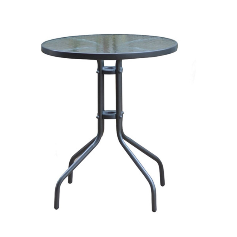 BALENO Τραπέζι Κήπου - Βεράντας, Μέταλλο Βαφή Ανθρακί, Γυαλί Tempered Φ60x70cm