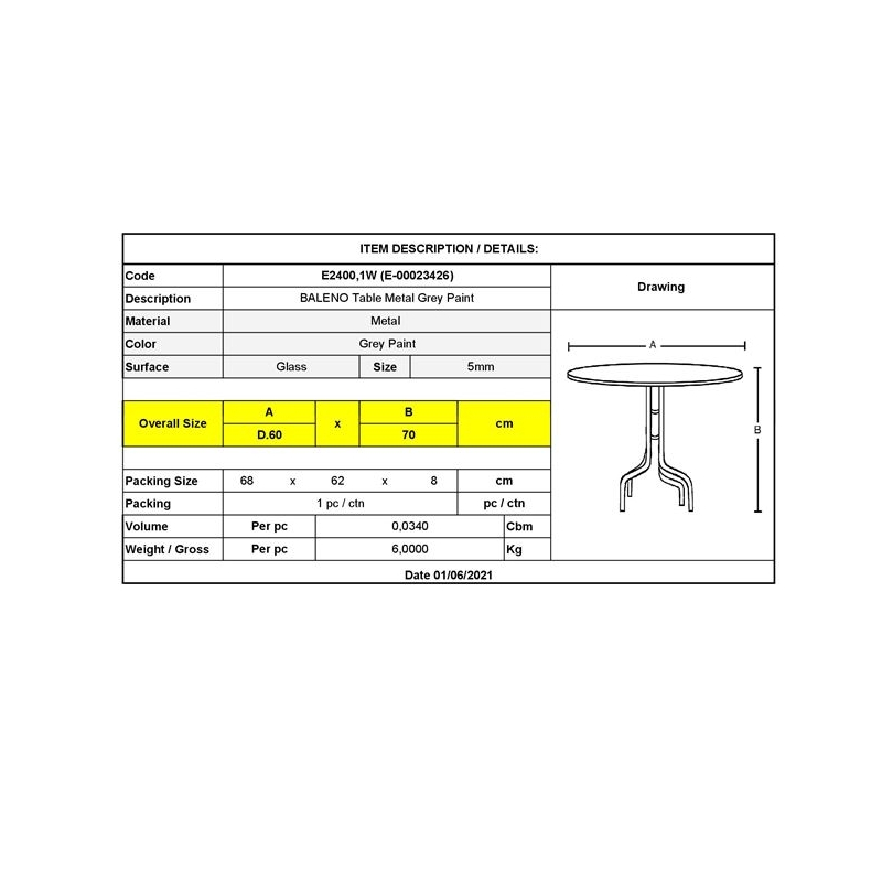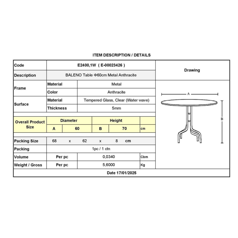 Ε2400,1W BALENO Τραπέζι Φ60cm Μεταλλικό Ανθρακί