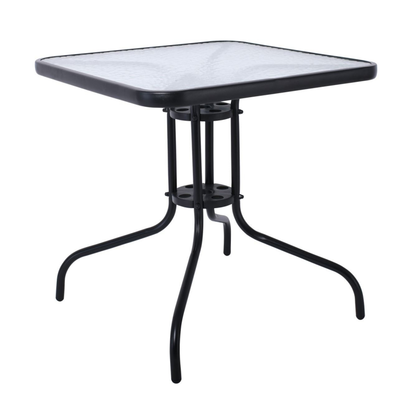 BALENO Τραπέζι Κήπου - Βεράντας, Μέταλλο Βαφή Μαύρο, Γυαλί Tempered 70x70x70cm