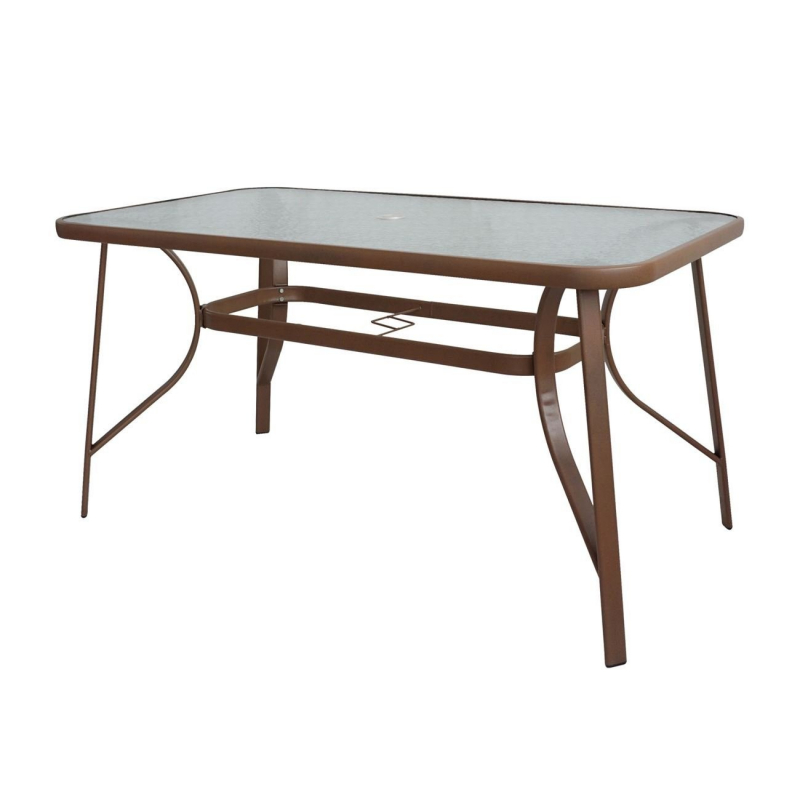 RIO Τραπέζι Κήπου - Βεράντας, Μέταλλο Βαφή Καφέ, Γυαλί 140x80x71cm