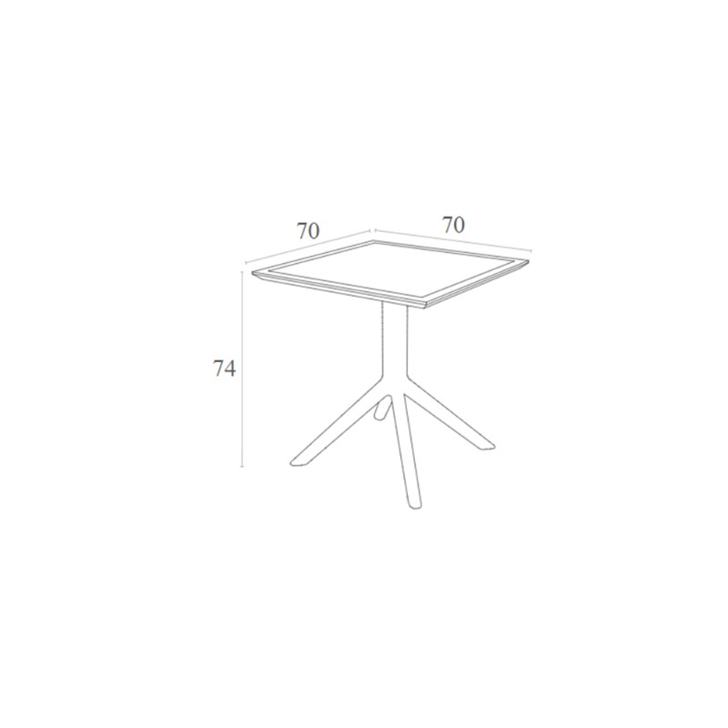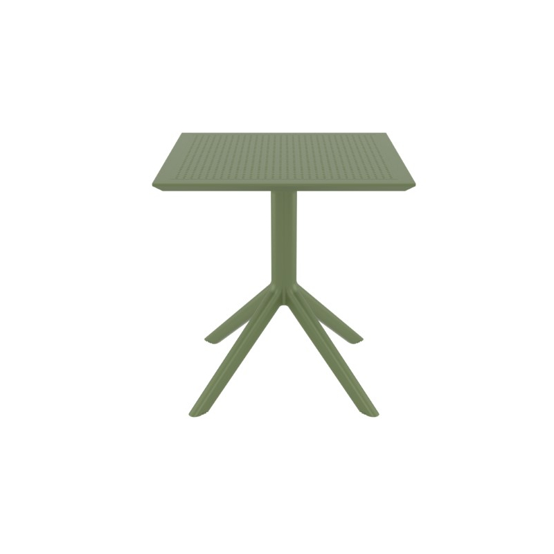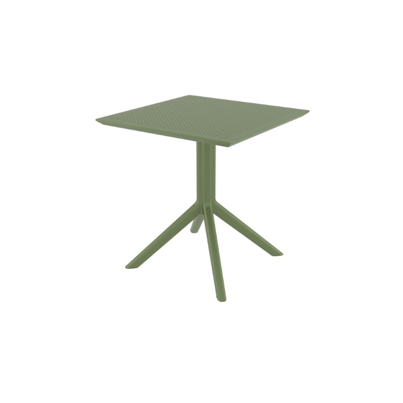 SKY τραπέζι 70Χ70 του οίκου Siesta σε χρώμα olive green.Κατασκευασμένο από πολυπροπυλένιο.Διαθέτει UV protection για μη αλλοίωση των χρωμάτων.Κατάλληλο για εσωτερική και εξωτερική χρήση.
