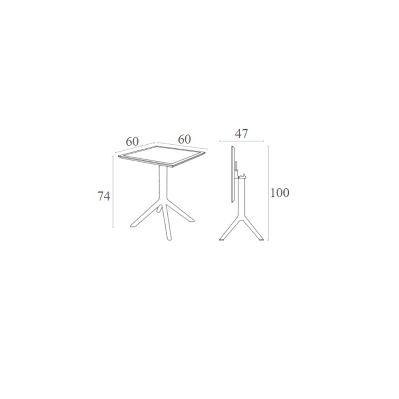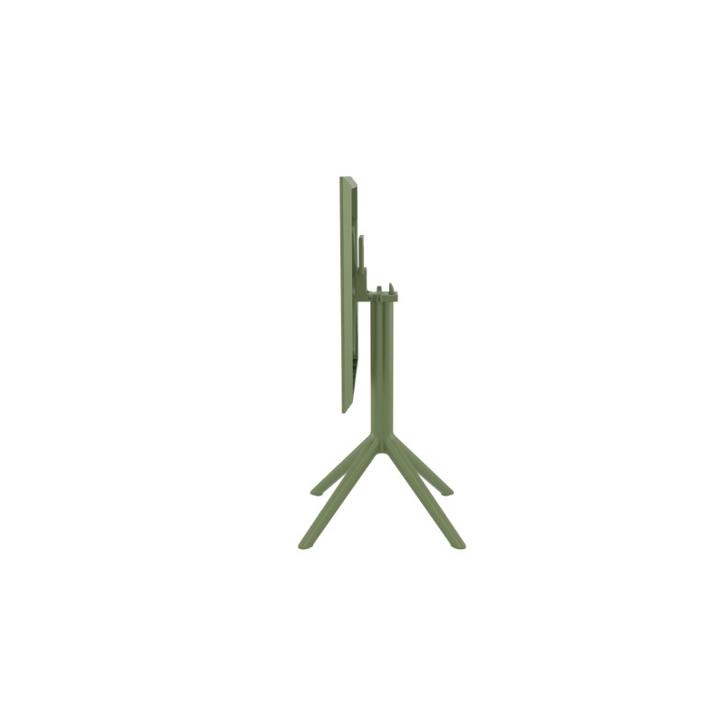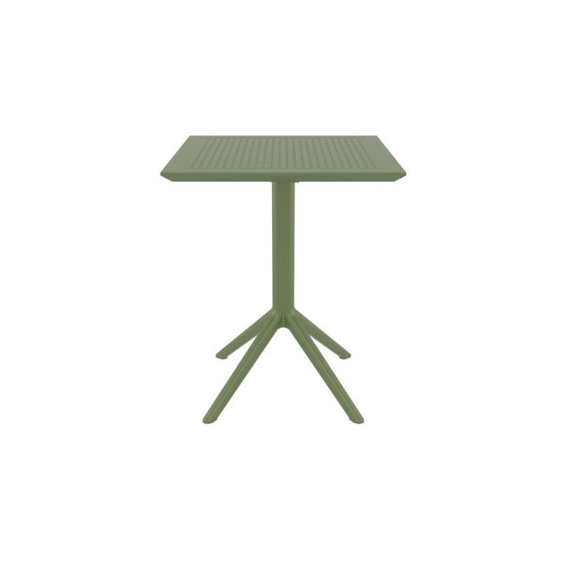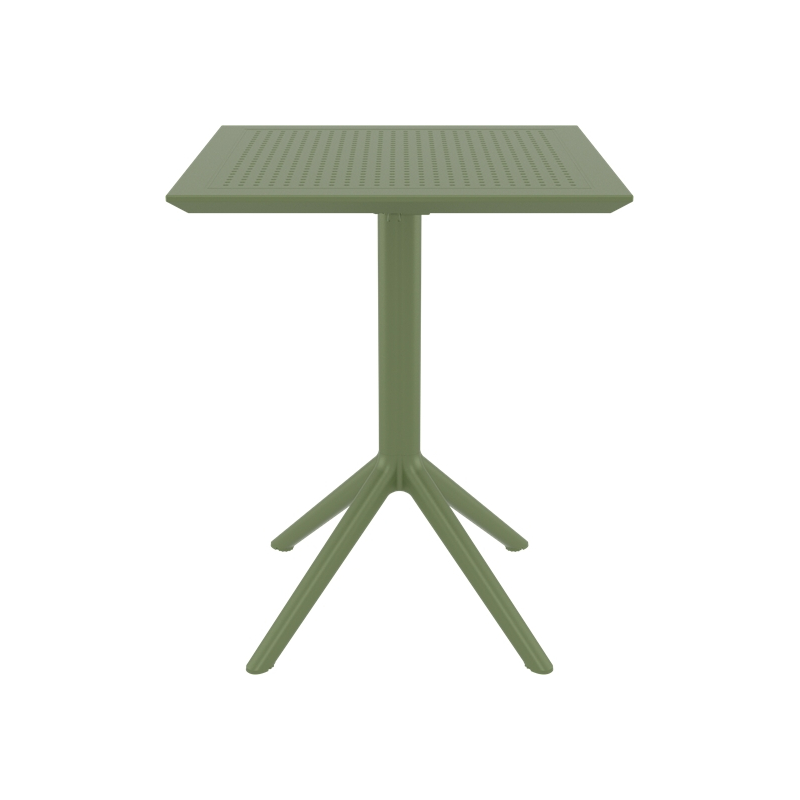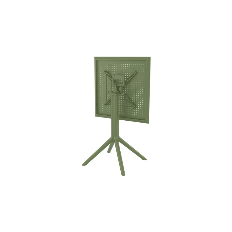 SKY πτυσσόμενο τραπέζι 60Χ60 του οίκου Siesta σε χρώμα olive green.Κατασκευασμένο από πολυπροπυλένιο.Στο κάτω μέρος της επιφάνειας διαθέτει κρυμμένα γατζάκια για εύκολη τοποθέτηση τσάντας.Διαθέτει UV protection για μη αλλοίωση των χρωμάτων.Κατάλληλο για εσωτερική και εξωτερική χρήση.