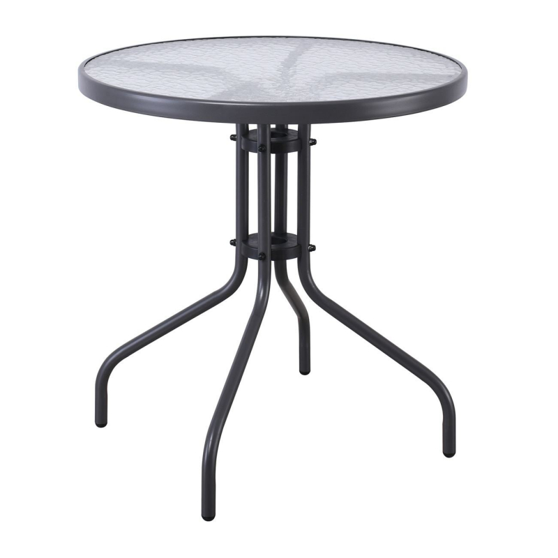 BALENO Τραπέζι Κήπου - Βεράντας, Μέταλλο Βαφή Ανθρακί, Γυαλί Tempered Φ70x70cm