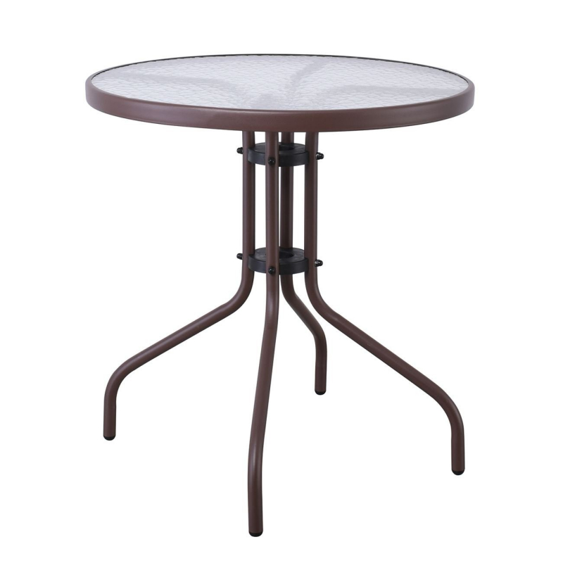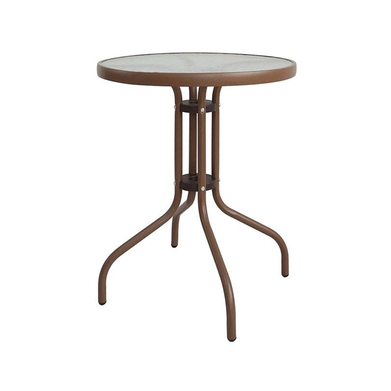 BALENO Τραπέζι Κήπου - Βεράντας, Μέταλλο Βαφή Καφέ, Γυαλί Tempered Φ70x70cm