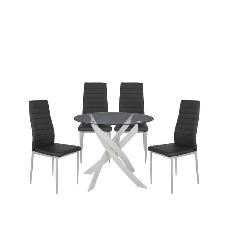 Σετ Τραπεζαρία (4+1) HEKLA λευκό/γκρι/μαύρο μέταλλο/PVC/γυαλί 90x90x74cm.
