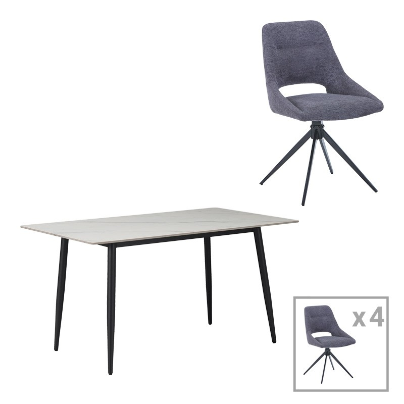 Τραπεζαρία Gustas-Luciano I pakoworld σετ 5τεμ λευκό μαρμάρου sintered stone-μαύρο μέταλλο 120x60x75εκ