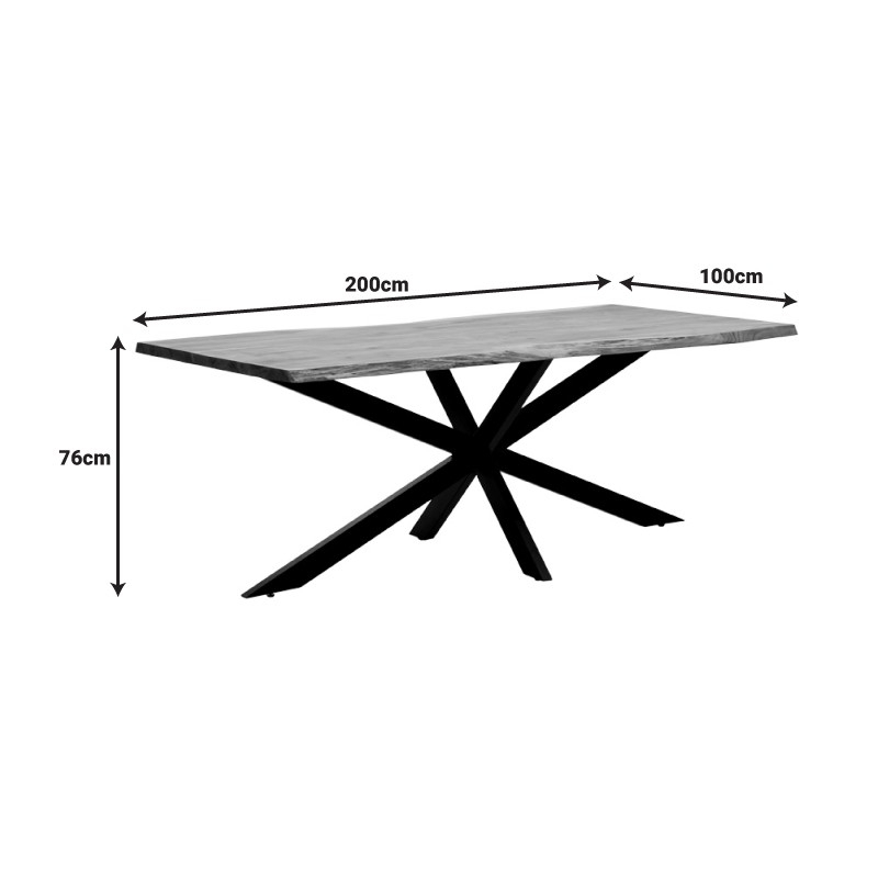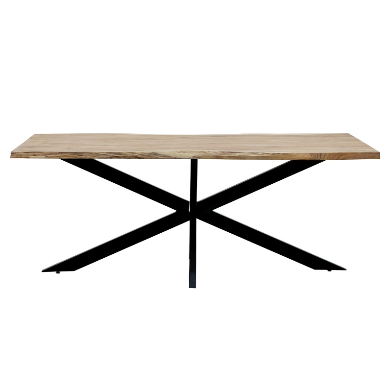Τραπέζι Lenoua pakoworld μασίφ ξύλο ακακίας πάχους 3.7-4εκ σε φυσική απόχρωση με μαύρα μεταλλικά πόδια 200x100x76εκ