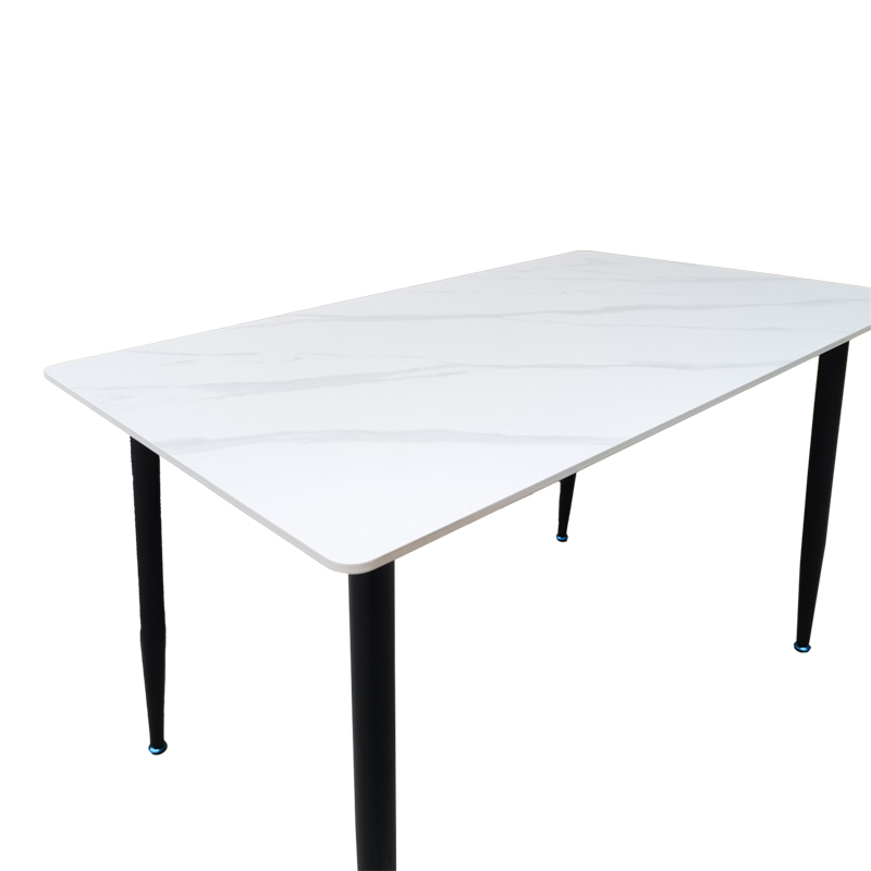 Τραπέζι Pembe pakoworld sintered stone λευκή όψη μαρμάρου με μαύρα μεταλλικά πόδια 120x70x75εκ