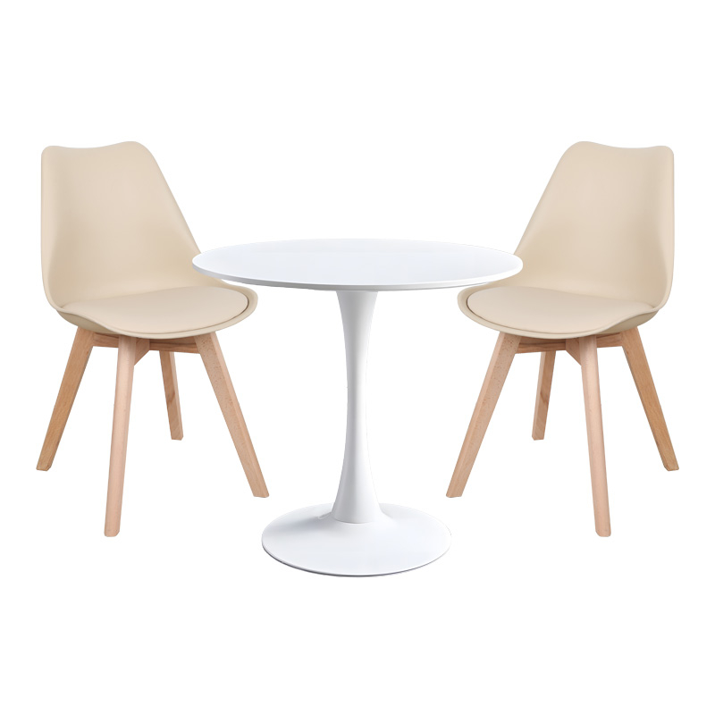 Τραπεζαρία Elijah-Gaston pakoworld σετ 3τεμ pp-pu σε taupe-λευκή απόχρωση με φυσικό πόδι Φ60x74εκ