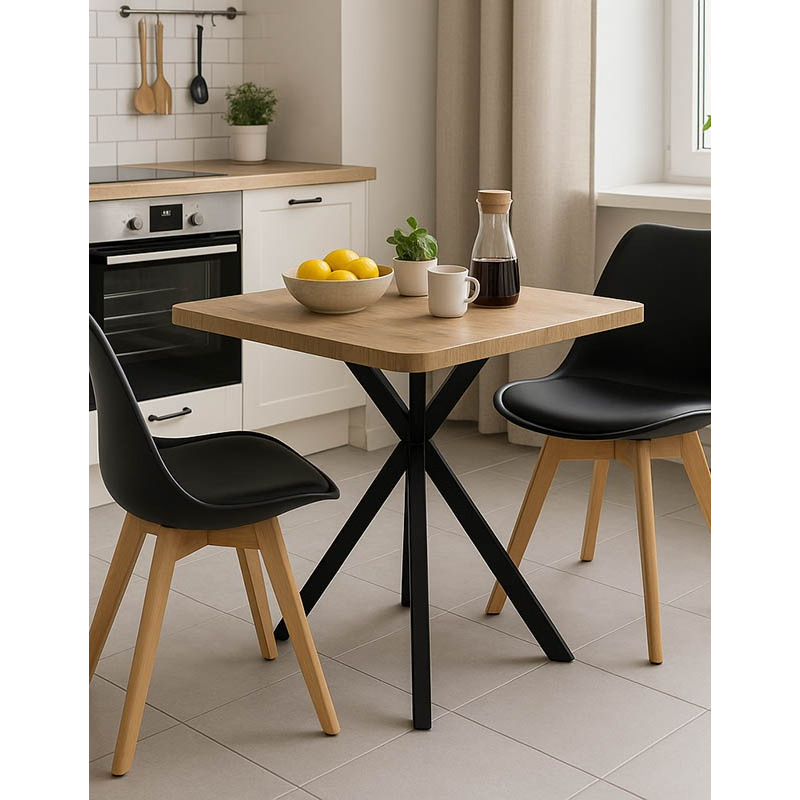 Τραπεζαρία με Καρέκλες Gaston μαύρο και Τραπέζι Prestone oak 70x70x75εκ Σετ 3τεμ