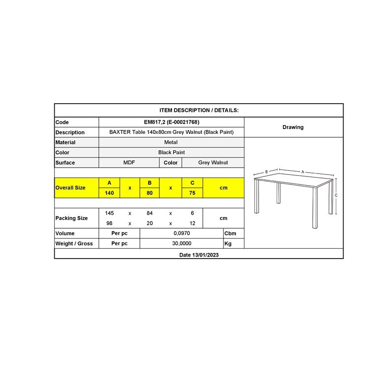 -10% 55.0534984 ΤΡΑΠΕΖΙ ΤΡΑΠΕΖΑΡΙΑΣ GOOSE HM9532 MDF ΚΑΡΥΔΙ-ΜΑΥΡΟ ΜΕΤΑΛΛΟ 120X80Χ75Yεκ. 69,82 € 62,84 €