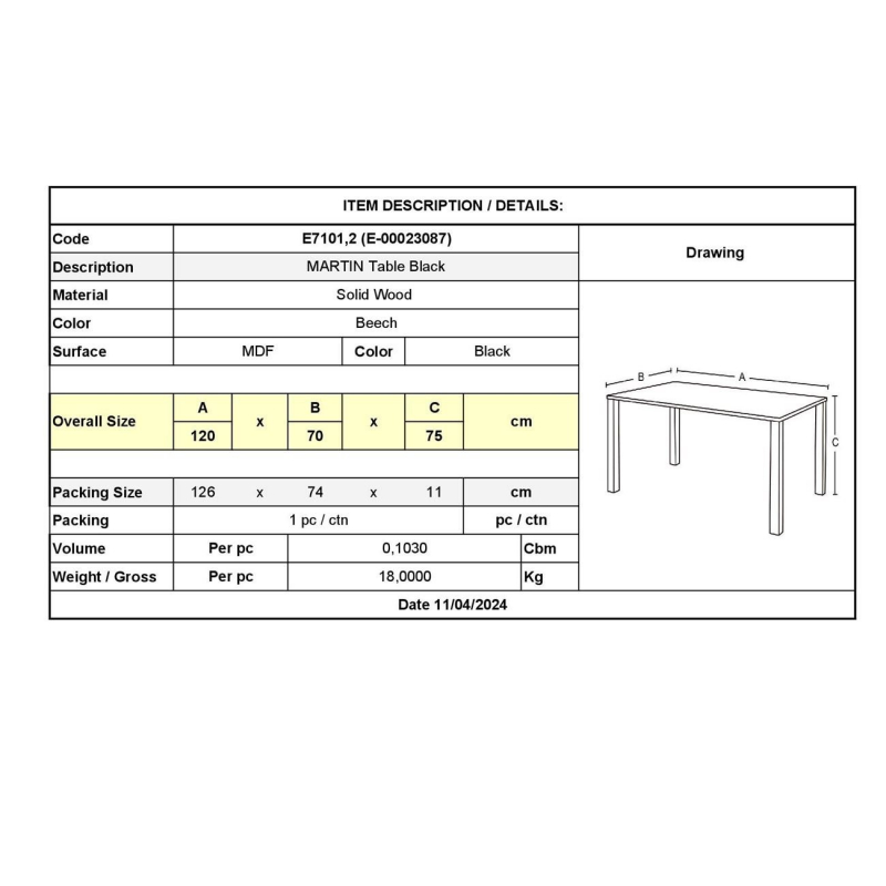Ε7101,2 MARTIN Τραπέζι 120x70cm Μαύρο
