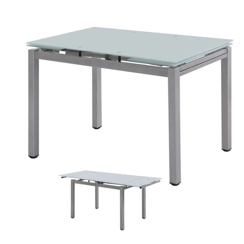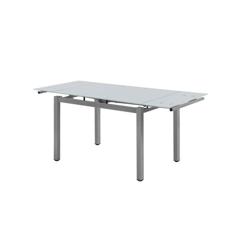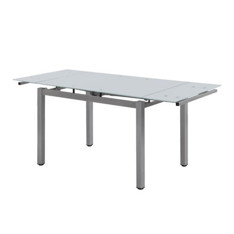 BLOSSOM Τραπέζι Τραπεζαρίας - Κουζίνας Επεκτεινόμενο, Μέταλλο Βαφή Γκρι, Γυαλί Άσπρο 110+(30+30)x70x77cm