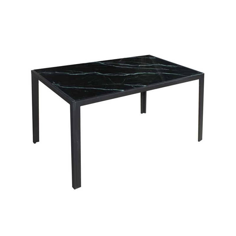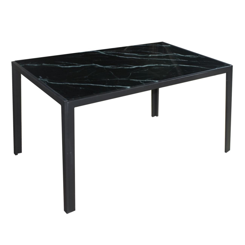DEGO Τραπέζι Τραπεζαρίας - Κουζίνας, Μέταλλο Βαφή Μαύρo, Γυαλί Μαύρο Μάρμαρο 140x80x75cm