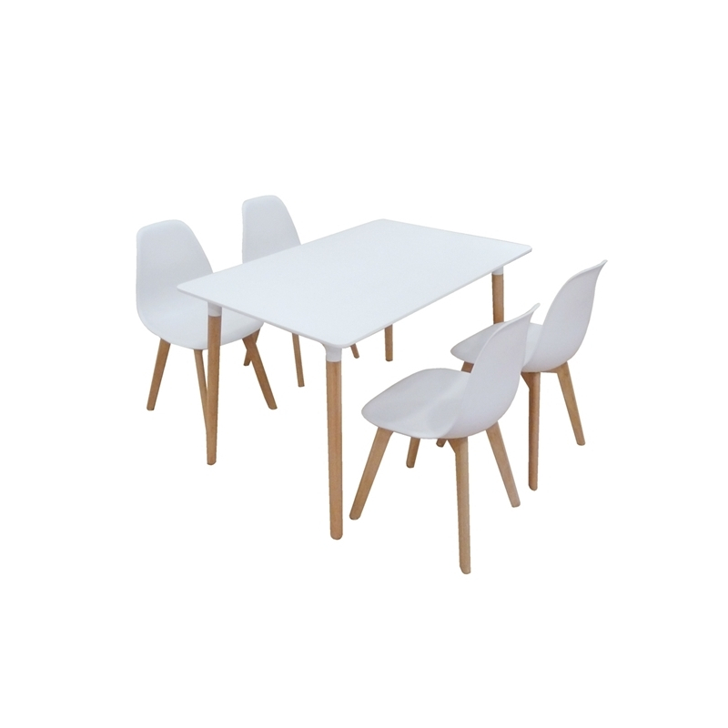 Set τραπεζαρίας εσωτερικού χώρου Loft. Το set αποτελείται απο 1 τραπέζι Randy σε διάσταση 120Χ80Χ72εκ. σε λευκό χρώμα και 4 καθίσματα Loft Plus σε white χρώμα. Ένα μοντέρνο Set ιδανικό για την τραπέζαρια ή την κουζίνα σας.