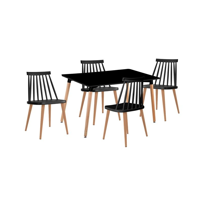 LAVIDA-ART Τραπεζαρία: Τραπέζι 120x80 Οξιά/MDF + 4 Καρέκλες Μέταλλο Βαφή Φυσικό PP Μαύρο Table:120x80x73 Chair:43x48x77
