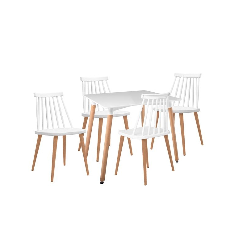 LAVIDA-ART Τραπεζαρία: Τραπέζι 80x80 Οξιά/MDF + 4 Καρέκλες Μέταλλο Βαφή Φυσικό PP Άσπρο Table:80x80x73 Chair:43x48x77