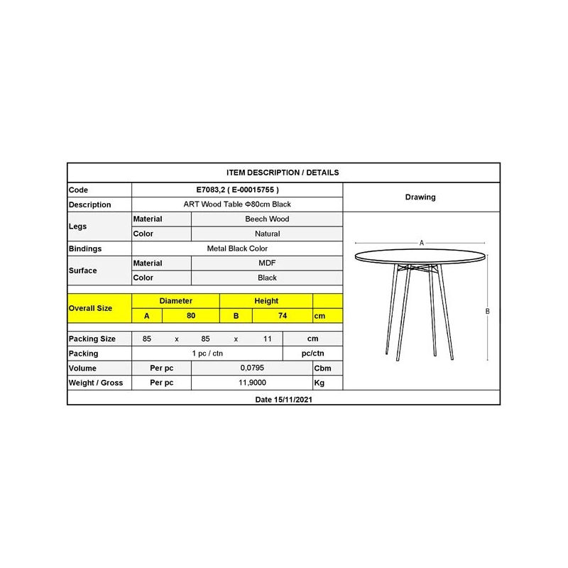 Ε7083,2 - ART Wood Τραπέζι Φ80cm Μαύρο