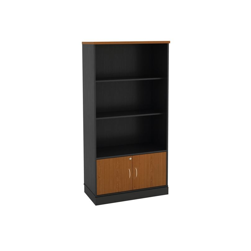 ΒΙΒΛΙΟΘΗΚΗ-Α Γραφείου, 3 Ράφια - Ντουλάπι Δίφυλλο, Απόχρωση Dark Grey - Cherry 80x40x172cm